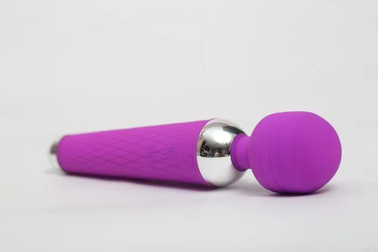 Ljubičasti silikonski vibracioni masažer sa vrstama pulsiranja .