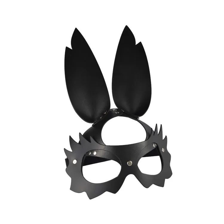 Crna kožna zečja maska sa dugim ušima