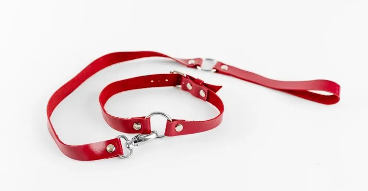 Crveni čoker od prave kože sa povodcem