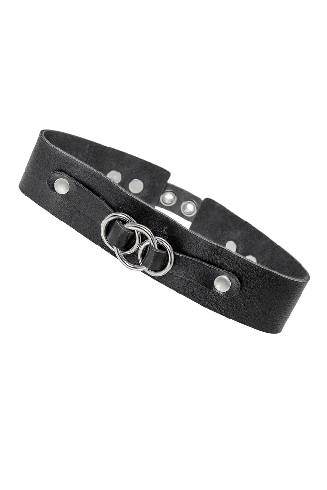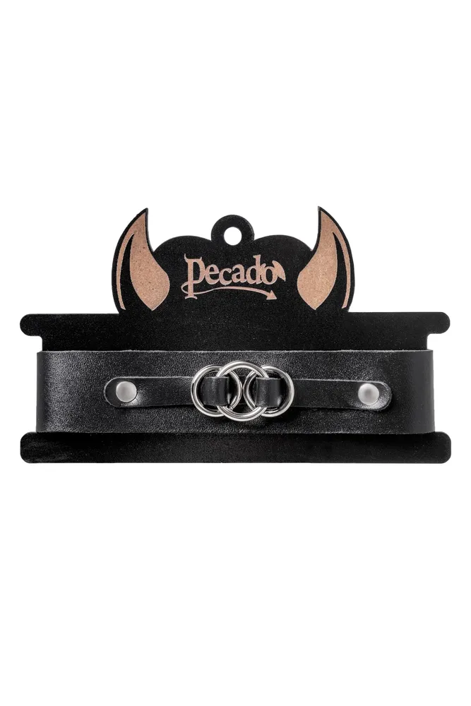 Choker-ogrlica Pecado BDSM, sa vezanim prstenovima na podlozi, koža, crna