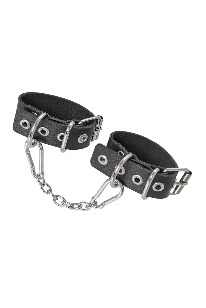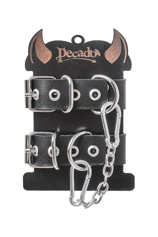 Pecado BDSM narukvice, jedna traka sa ušicama, koža, crna