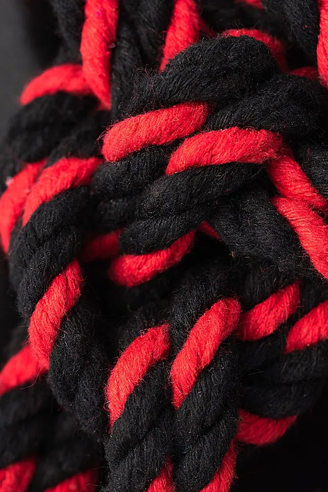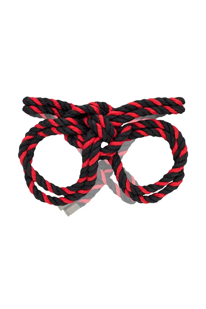 Lisice-okovi Pecado BDSM, čvor-alfa, od pamučnog užeta, crno-crvene, 3,3 m