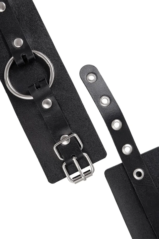 Pecado BDSM lisice, debela koža sa ušicama, prirodna koža, crna