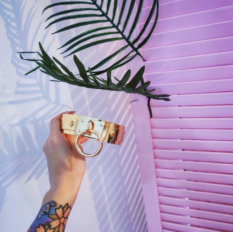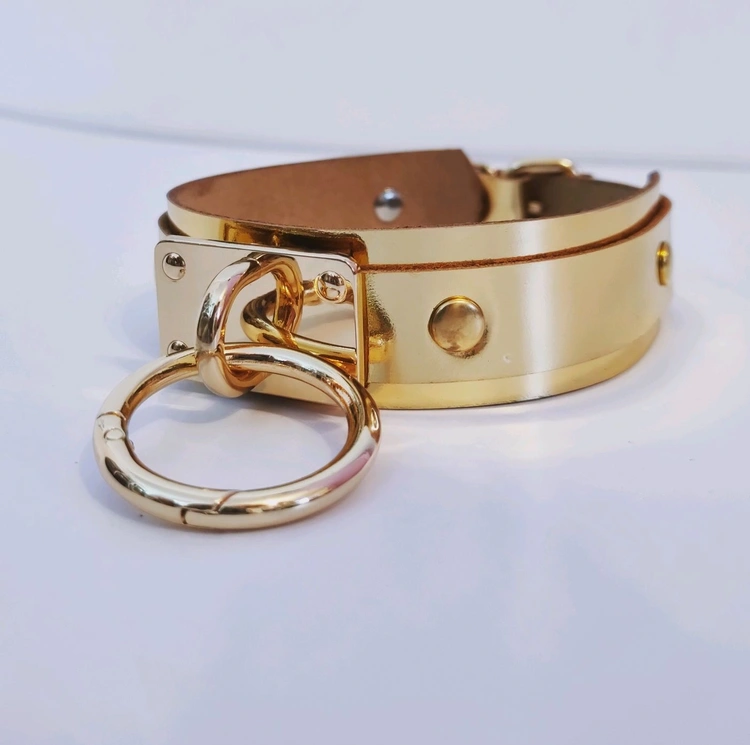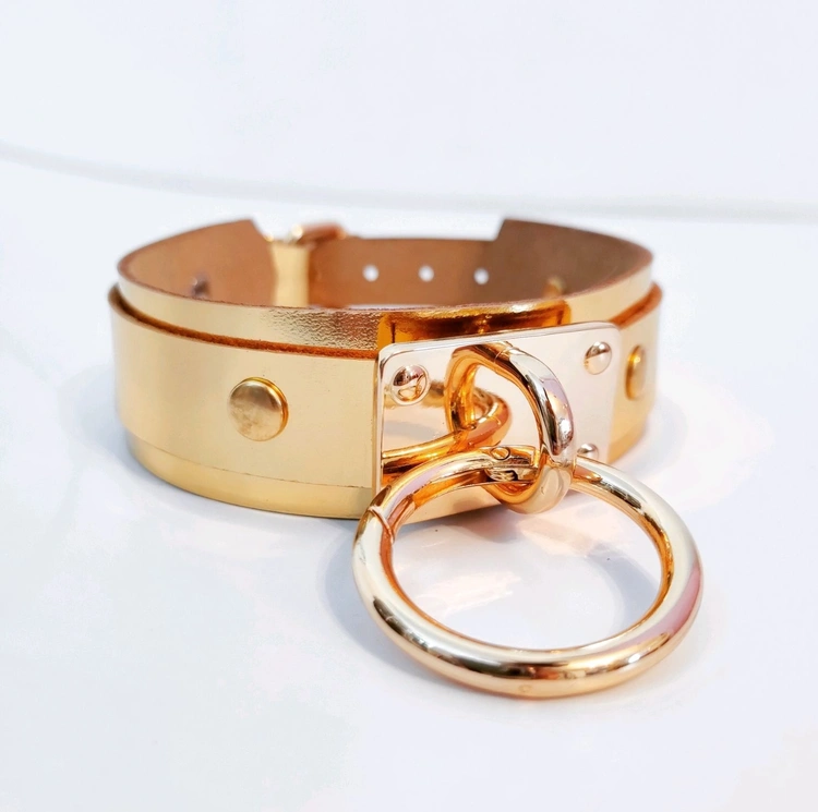 Ogrlica od kožne ogrlice sa zlatnim prstenom od prave kože za zabavu