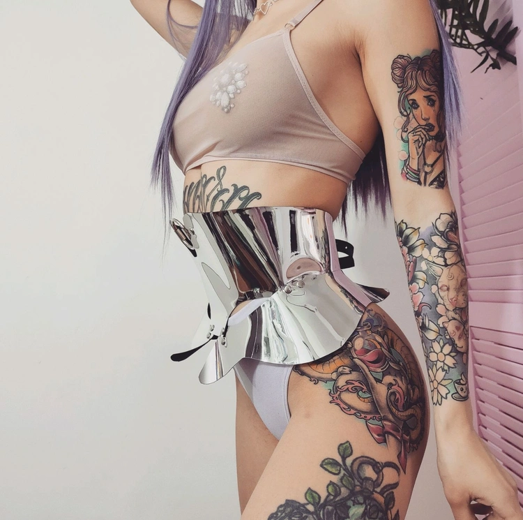 Korzet ogledalo futuristički izgled baska pojas srebrni portupeja
