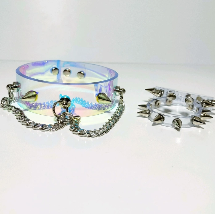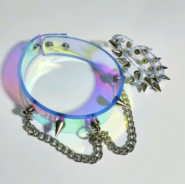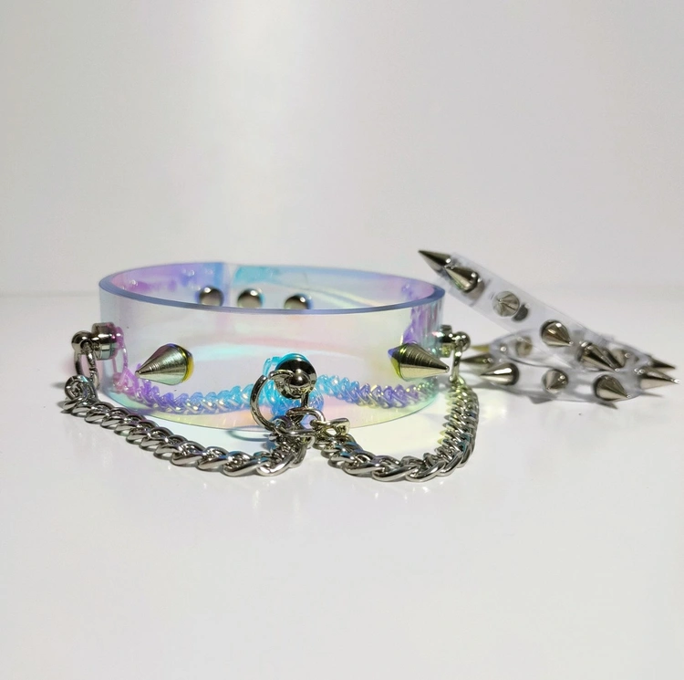 Ogrlica Choker holografski sa šiljcima i lancem za zabavu vinil